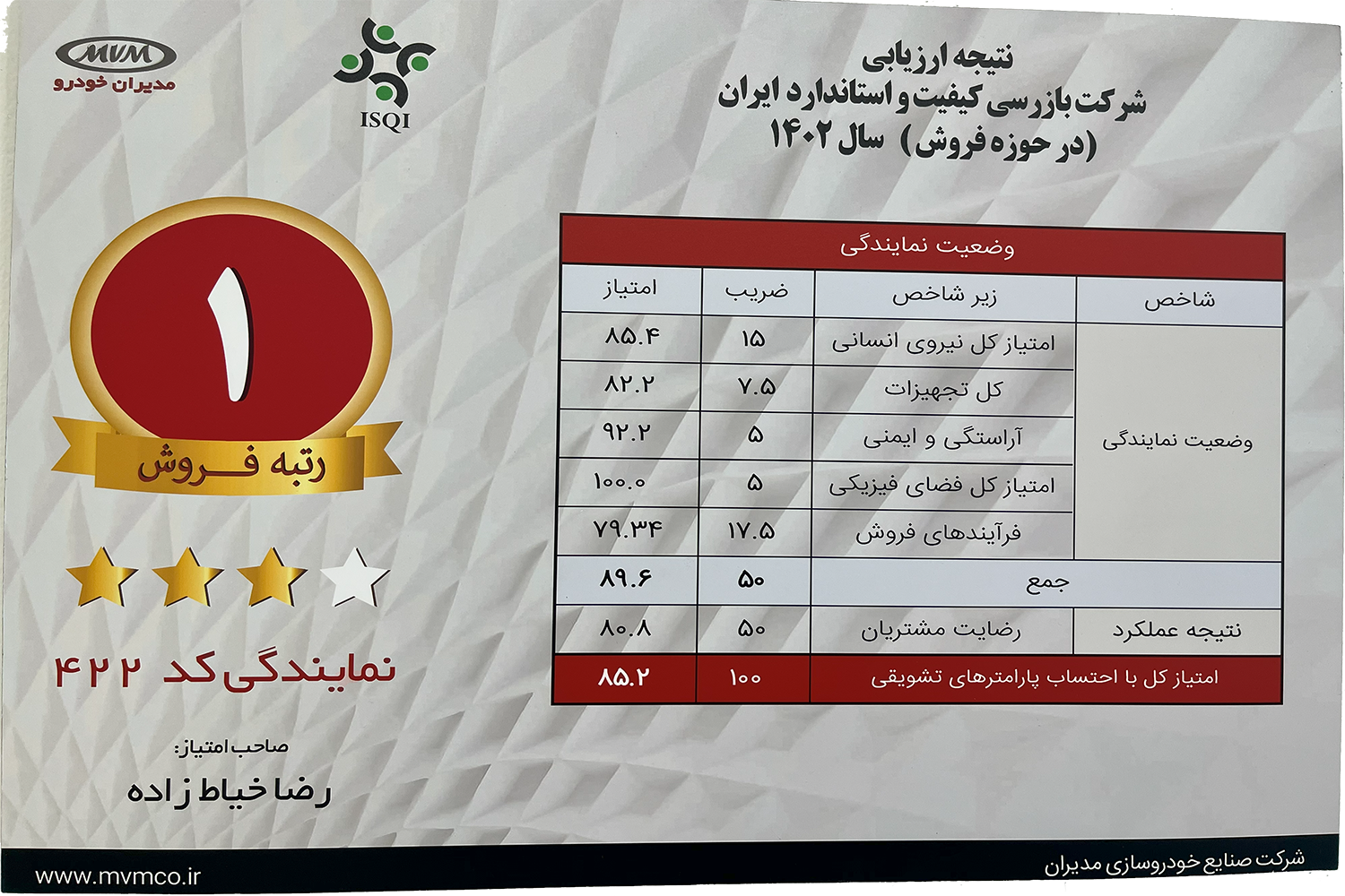 - نمایندگی مدیران خودرو کد ۴۲۲