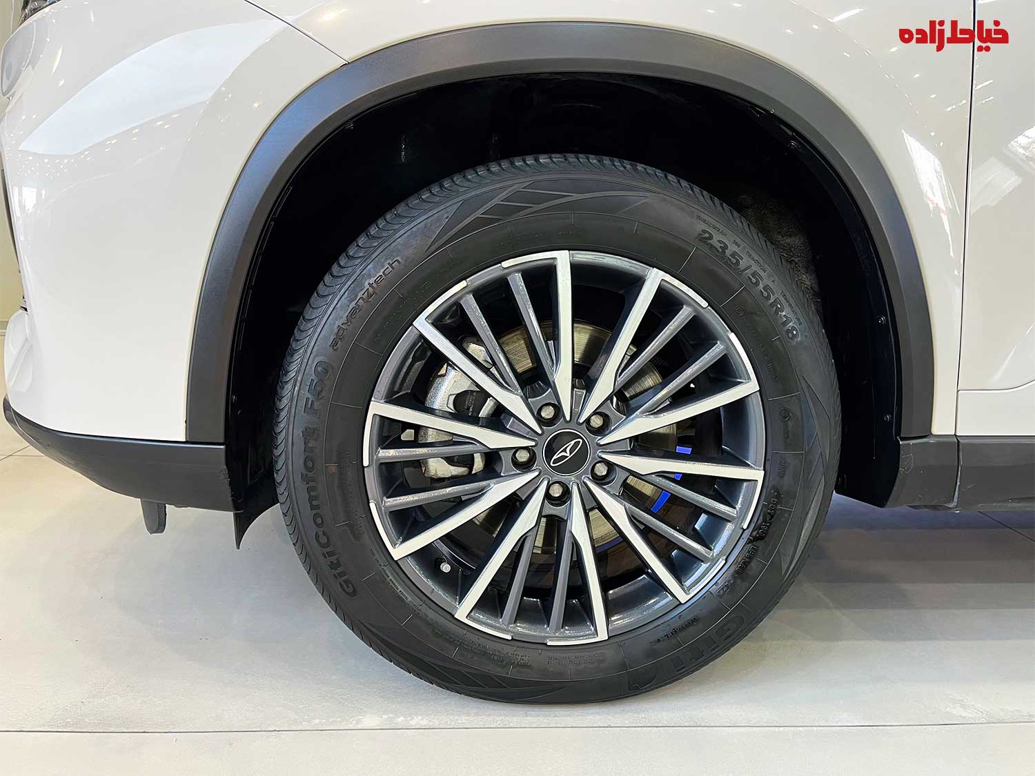 در Tiggo 8 PRO Max IE هم مثل اکثر ماشین های چری، با جلوپنجره کهکشانی سه بعدی روبرو هستیم. این ویژگی در کنار چراغ های بزرگ، ظاهر خشن و با ابهتی به تیگو 8 پرومکس داده است. رینگ های 18 اینچی آلومینیومی نیز ظاهر در جذابیت ظاهری این خودرو نقش بسزائی دارند.
