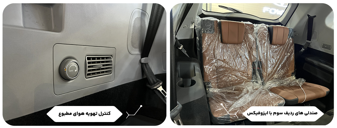 صندلیهای ردیف سوم این خودرو قابلیت جمع شدن و باز شدن دارند و مجهز به ایزوفیکس هم هستند که محل قرار دادن صندلی کودک است. این ردیف همچنین کنترل تهویه هوای مطبوع دارند که بصورت مستقل قادرند تهویه را برای این ردیف تنظیم کنند.
