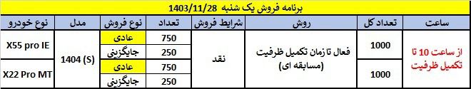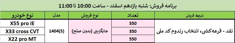 پیش فروش  طرح عادی، خودروی X22 Pro MT ساعت 10:00 صبح