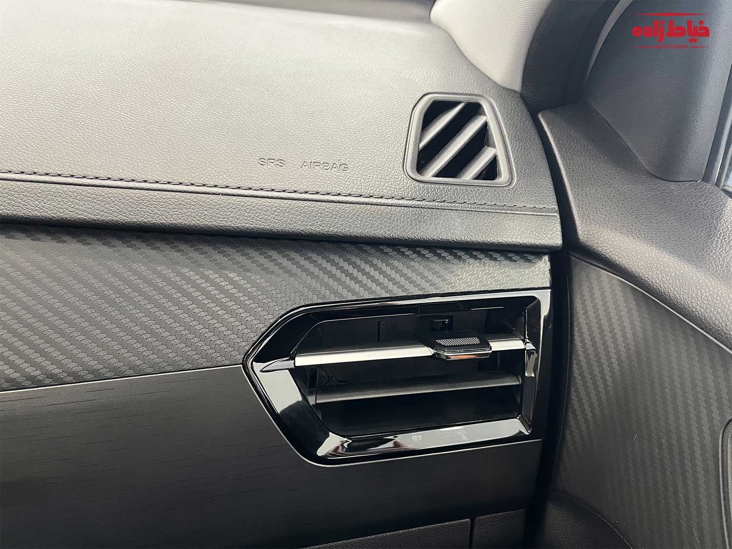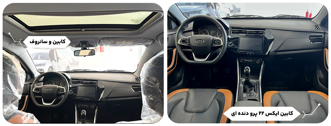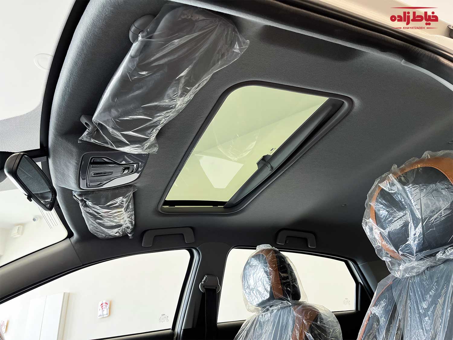 پنل به صورت دو صفحه طراحی شده که یکی در پشت فرمان برای نمایش سرعت و دور موتور برای راننده است و دیگری یک کامپیوتر سفری است. در بخش وسط هم یک کنسول وسط قرار گرفته و روی سقف، سانروف را می بینید که بصورت برقی کار می کند.