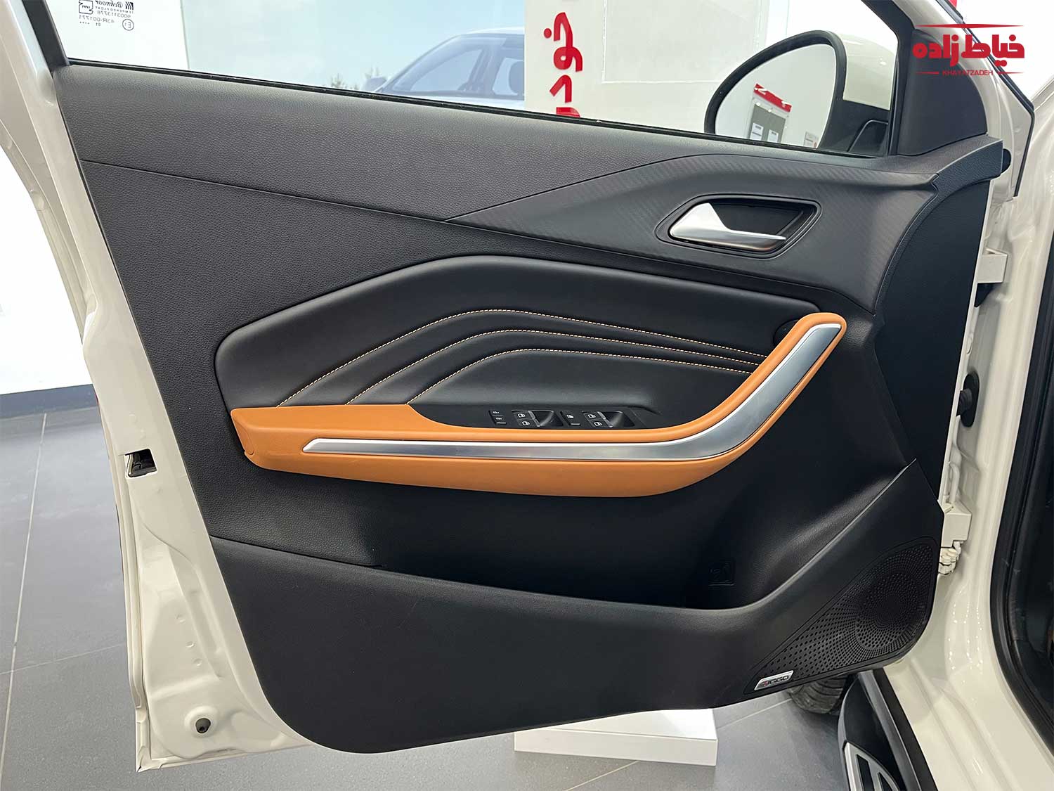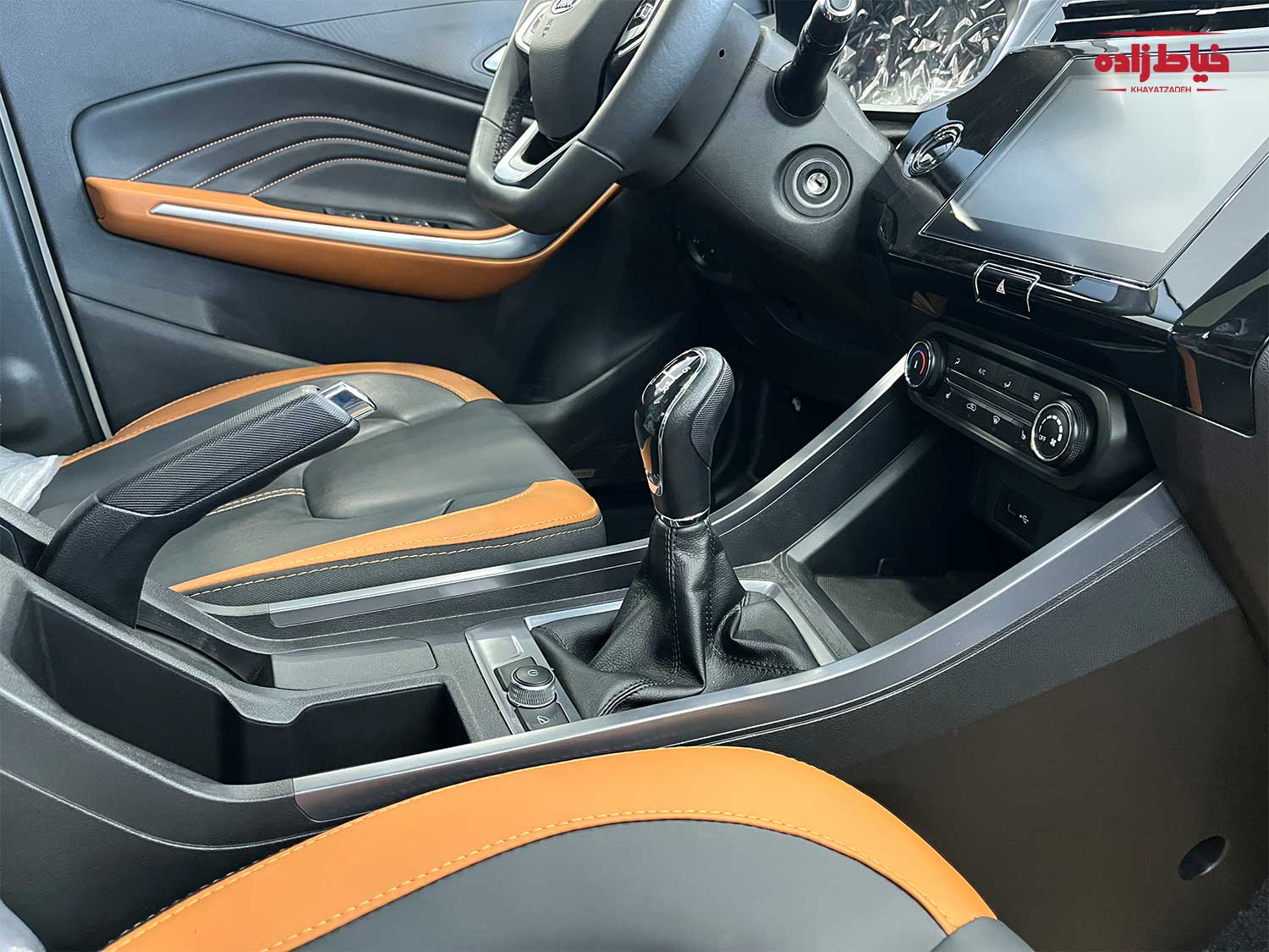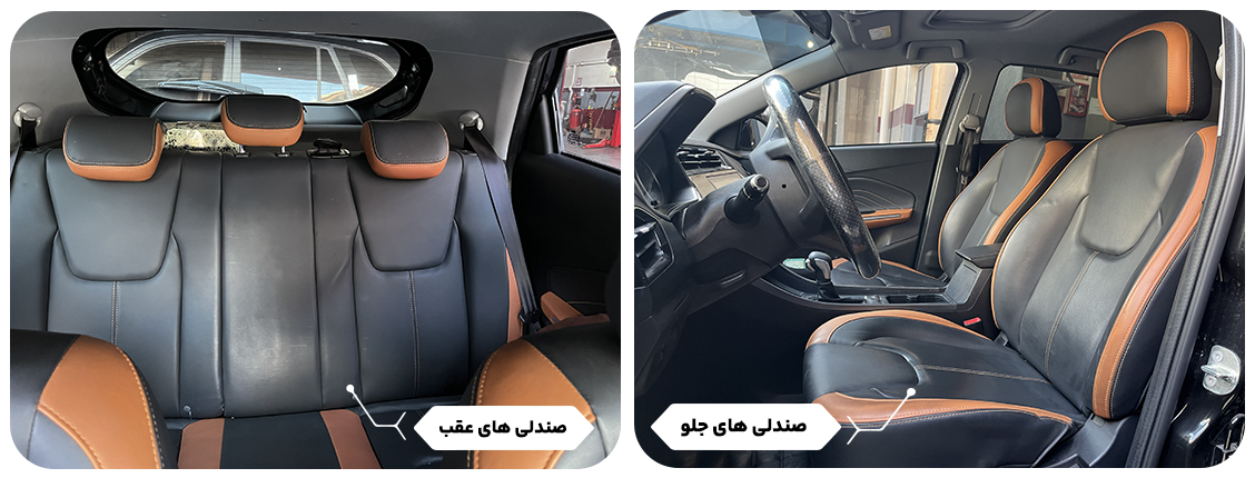 این خودرو دارای صندلی های چرمی دو رنگ مشکی و نارنجی بوده که داخل ماشین را بسیار جذاب و مدرن کرده و همچنین امکان افزایش فضای بار با جمع شدن صندلی های ردیف عقب نیز وجود دارد. با این کار می توانید به راحتی در صندوق عقب تان، وسایل زیادی را حمل کنید.