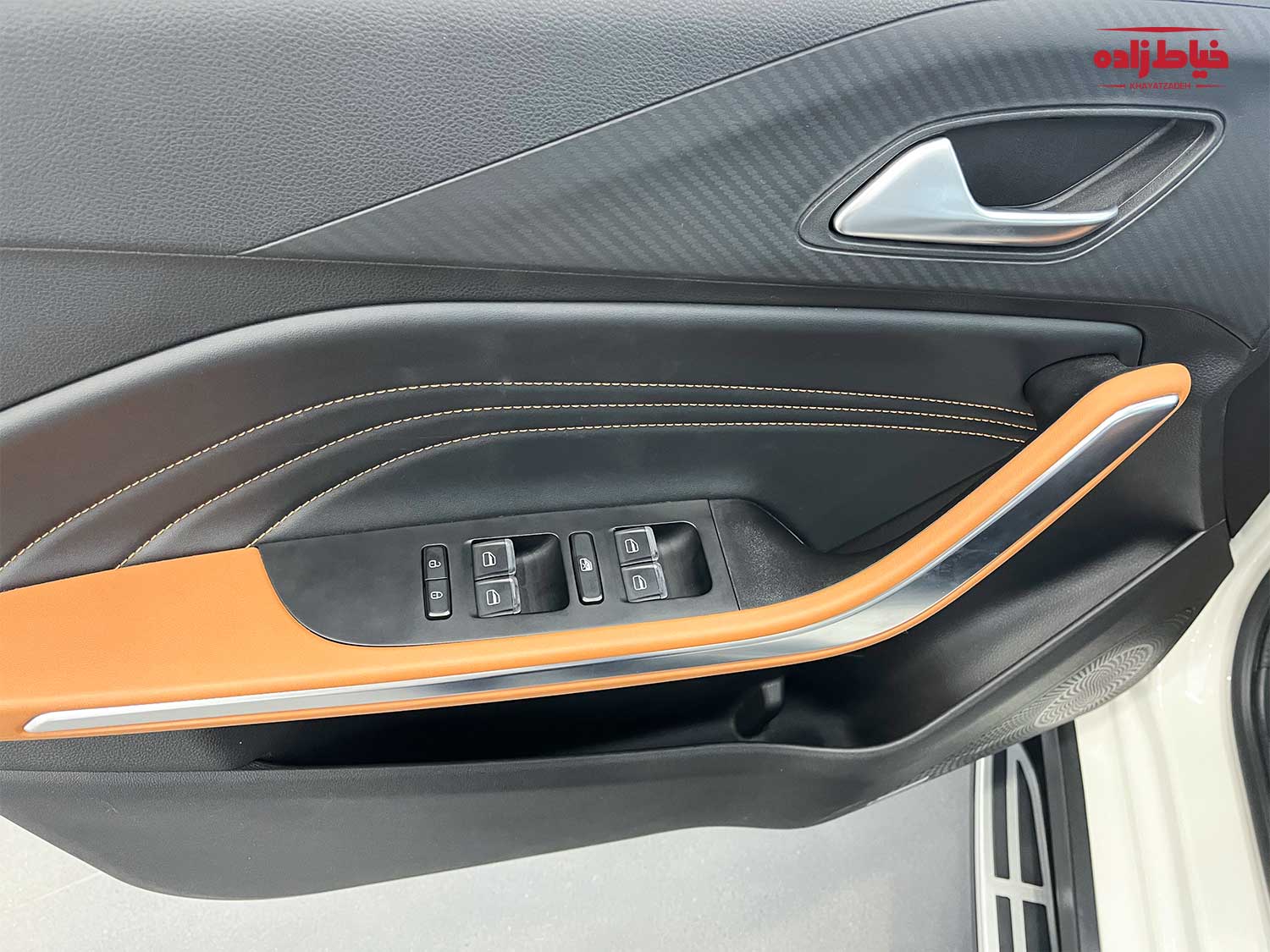 با نشستن داخل ماشین حس خواهید کرد که وارد یک ماشین اسپرت شده اید. طراحی تریم داخلی دورنگ نارنجی و مشکی بوده و صندلی های چرمی دو رنگ دارد. غربیلک فرمان به شکل دی کات طراحی شده و بر روی فرمان دکمه های مالتی مدیا و بوق قرار دارند.